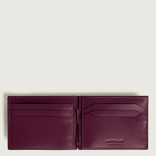 Slim and stylish, this Meisterstück 6cc bi-fold wallet features an elegant metal money clip to hold your banknotes in place. Crafted from smooth leather in cassis, the wallet also features six dedicated slots for credit cards.