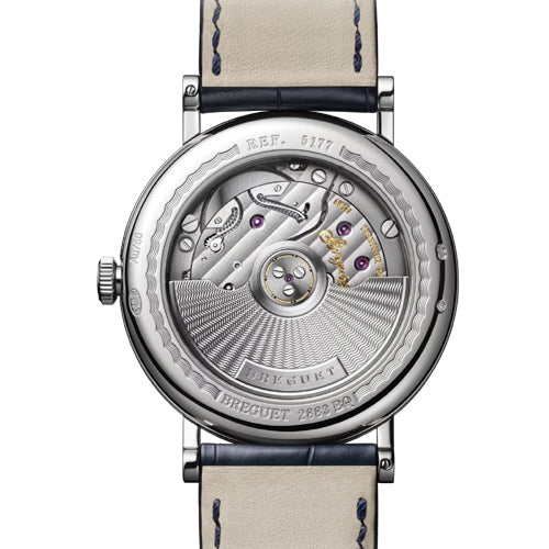 The display of the time on a guilloché or enamel dial is complemented by a date indication at 3 o’clock. A pure Breguet product, this model features all of the refinements of a Classique collection watch: a fluted case band, transparent caseback, lugs, a dial available in a “Grand feu” enamel or guilloché finish, and Breguet hands with their characteristic open tips.