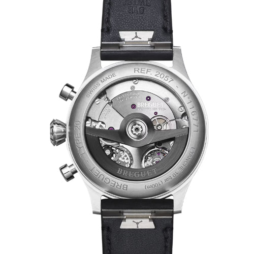 This model takes its inspiration from the 1,100 watches delivered to the French Air Force between 1955 and 1959 and whose name was written as Type 20 with Arabic numerals. Featuring a 42 mm case made of steel. Its black dial has been modernised all while remaining faithful to the Type 20 identity. The Arabic numerals and the triangle present on the bezel are luminescent and feature a mint green hue, as do all the hands. The 30-minute counter at 3 o’clock, is now larger than the 60-seconds counter displayed at 9 o’clock, while a date aperture has been added at 4:30.