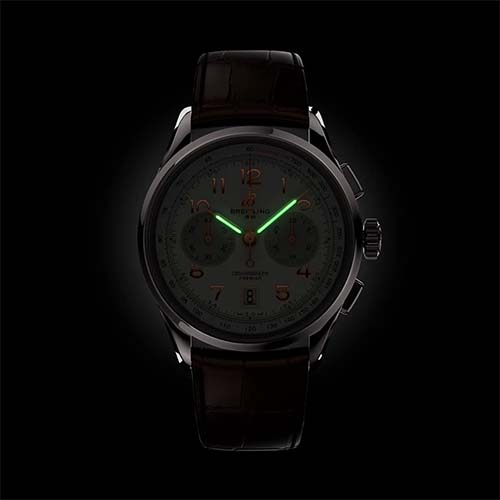 In the early 1940s, Willy Breitling was already dreaming of a time after the war, when utility would give way to unbridled optimism. He began designing a chronograph that would be functional but also undeniably elegant and infinitely wearable—in his words, “the unmistakable stamp of impeccable taste.” He called this new line the Premier. To create its modern Premier, Breitling preserved distinctive vintage-Premier details, including the smooth fixed bezel, twin-register dial, streamlined rectangular pushers and applied Arabic numerals. The Premier B01 Chronograph 42 is available in an array of dial colors and case materials. It comes on a choice of classic alligator leather strap or sleek 7-row metal bracelet. Today’s Premier also lives up to Willy Breitling’s uncompromising technical standards with its exceptional self-winding movement—the COSC-certified Breitling Manufacture Caliber 01—designed for maximum precision, reliability and functionality.