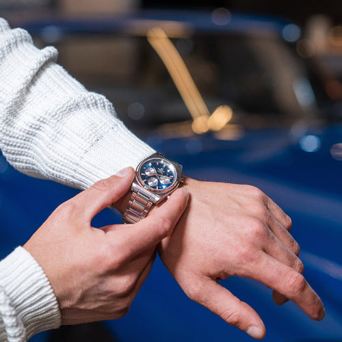 Introducing the EDIFICE motorsports chronograph inspired by the classic sportscar. Striking index bars join the legendary 3-6-9 inset dial layout in a time-honored sporty design. The smaller diameter of the case presents an elegant look of sheer speed. With sapphire crystal, stainless-steel case, and substantial stainless-steel band, this timepiece is water resistant up to 10 bars. This sporty, classic chronograph takes you from casual settings to business meetings in a split second.