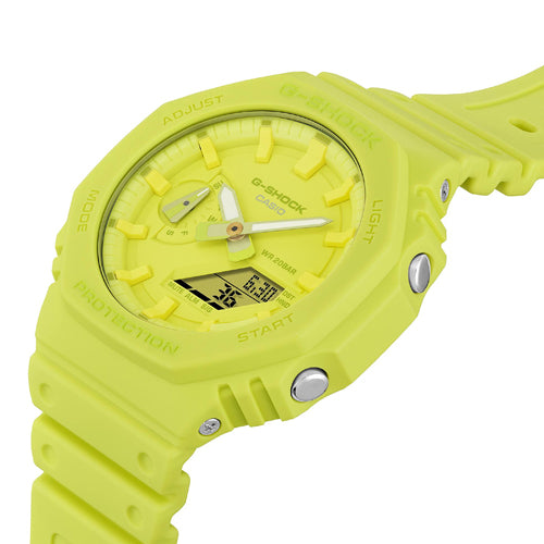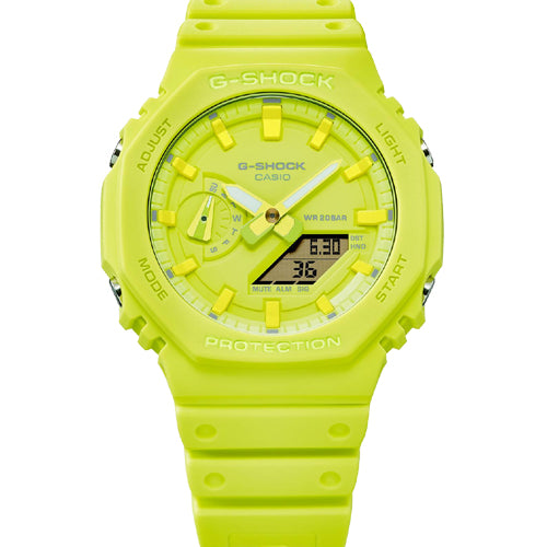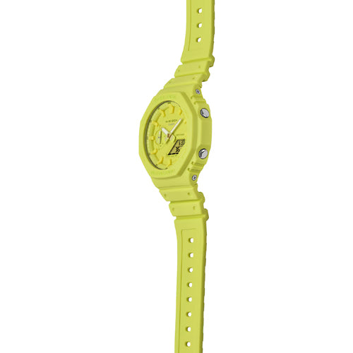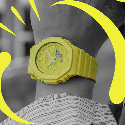 Welcome to Tone-on-Tone G-SHOCK — watches devoted to the monochrome aesthetic, down to the finest detail. The GA-2100 clothes its iconic form in tone-on-tone style, available in three popular colors — turquoise, white, and volt yellow. The case, bezel, band, and even the individual dial components are finished in subtly different shades of the same color for a monochromatic look that boasts surprising depth and dimension. These colorful watches make a great accessory for your street-savviest fashion.