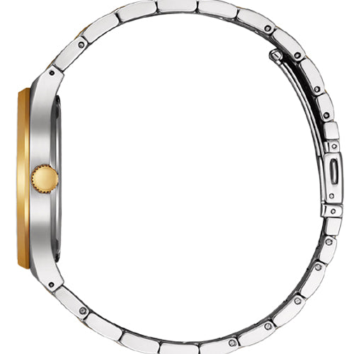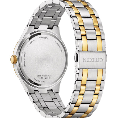 Introducing the Citizen BM7656-51L Eco-Drive Men's Watch, a timepiece that perfectly blends modern technology with classic sophistication. The two-tone stainless steel case and bracelet, paired with a stunning blue dial, create a bold yet elegant look suitable for any occasion, whether formal or casual. Powered by Citizen’s Eco-Drive technology, this watch is charged by any light source, meaning no battery changes are necessary. It’s designed for convenience and sustainability, ensuring continuous operation without the hassle of battery replacements. The durable, scratch-resistant mineral crystal and secure fold-over clasp provide lasting comfort and protection. With a water resistance of up to 50 meters, the BM7656-51L is ideal for daily wear, handling light splashes and handwashing with ease. If you’re looking for a watch that combines eco-friendly technology with a timeless design, the BM7656-51L is the perfect choice.