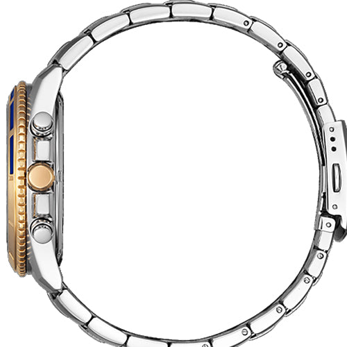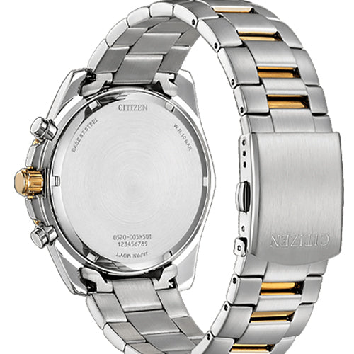 The Citizen Quartz men's Sports Chronograph comes with 1/1 second units chronograph 60 minute timing, 24 hrs display and date display. Featuring stainless steel case and bracelet with a dark blue dial styling, the watch is an attention grabber. The watch is powered by CITIZEN's high precision Japanese Quartz movement.