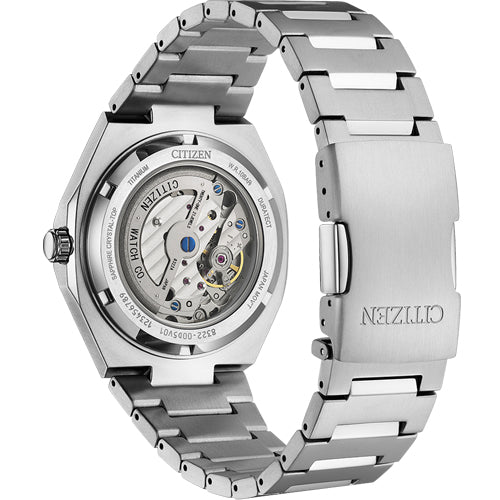 The Citizen Zenshin 60 NK5020-58P is a refined automatic timepiece that blends modern design with mechanical sophistication. It features a 40.5mm Super Titanium™ case and bracelet, treated with scratch-resistant Duratect coating to ensure both durability and lightweight comfort. At its heart is Citizen’s in-house Caliber 8322 movement, delivering a 60-hour power reserve, hacking seconds, and a daily accuracy of –20 to +40 seconds. The gold-toned dégradé dial offers a subtle yet striking aesthetic, highlighted by a small seconds subdial at 4:30 and protected by sapphire crystal. An exhibition caseback reveals the mechanical beauty within, while the 12-sided brushed bezel and 100-meter water resistance round out this elegant yet robust timepiece.