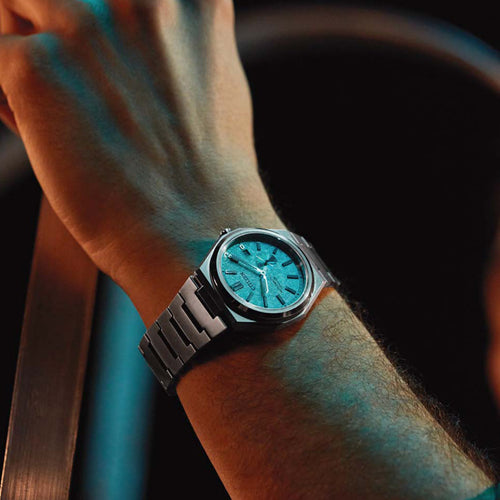Pairing classic proportions and innovative technology with a distinctly modern style, we present our new Integrated Super Titanium™ Automatic series. Made with our proprietary material, Super Titanium™, which is five times harder and 40% lighter than stainless steel and is scratch- and rust-resistant, this sporty timepiece features a 40.5mm silver-tone Super Titanium™ case that is elevated with finely brushed and polished finishing while being secured to the wrist with an integrated matching bracelet. On the dial, a textured green color is accented with an outer minute ring in black, with silver-tone details and luminous hands and markers. A date window at the 3 o'clock position adds daily utility, while an off-center sub-dial beside it indicates the running time powered by the mechanical movement inside. Water resistant to 100 meters. Automatic caliber 8213.