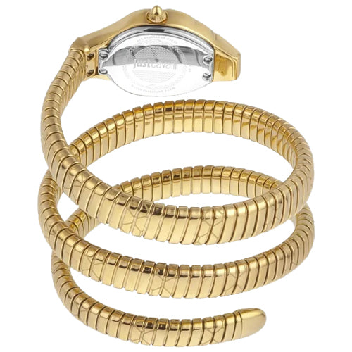 Lending a contemporary twist to an elegant design, this women's analog watch from the Snake collection by Just Cavalli. The dark green dial is protected by a mineral glass. Besides, it is completed with a bangle clasp to ensure a secure fit on the wrist.