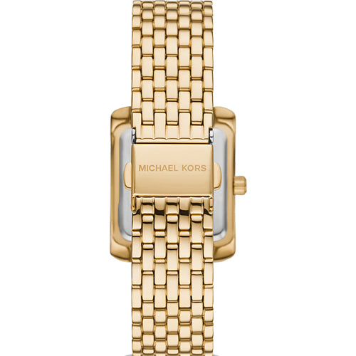 Side panels of understated pavé crystals add shine to the rectangular face of our petite Emery watch. The polished beveled strap is made of gold-tone stainless steel, while the dial features Roman numeral indexes for a luxurious finish. Glamorous enough to pair with evening looks yet understated enough to complement a simple T-shirt and jeans, this is a timeless style you’ll never want to take off.