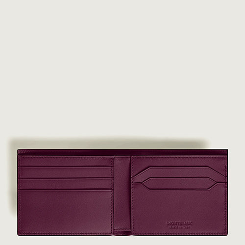 Slim and stylish, our classic Meisterstück 6cc bi-fold wallet makes for an elegant everyday companion. Designed to hold all your essentials, the wallet features six credit card slots, two compartments for banknotes, plus two additional pockets for receipts. Crafted from sleek cassis leather, it's finished with the Montblanc emblem.