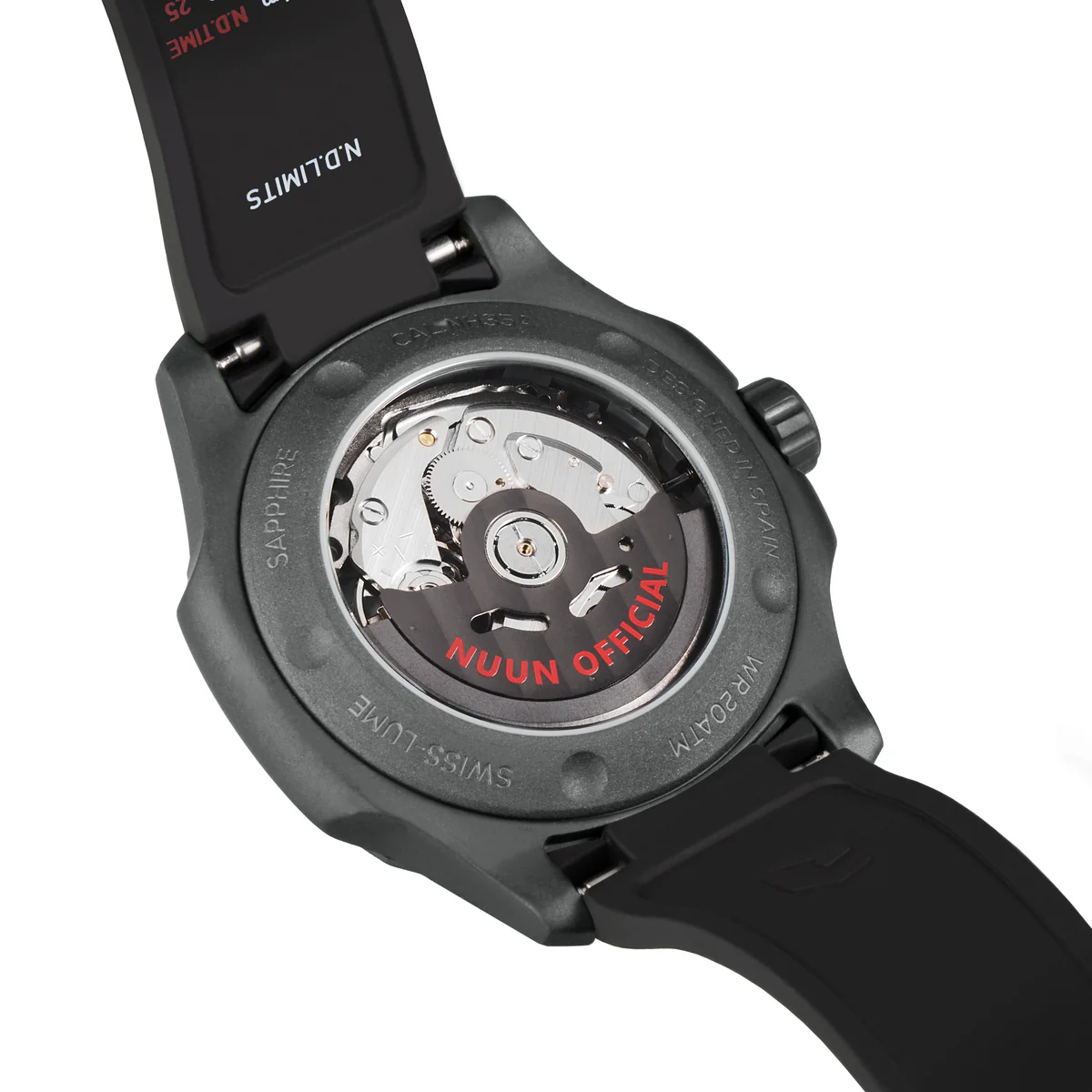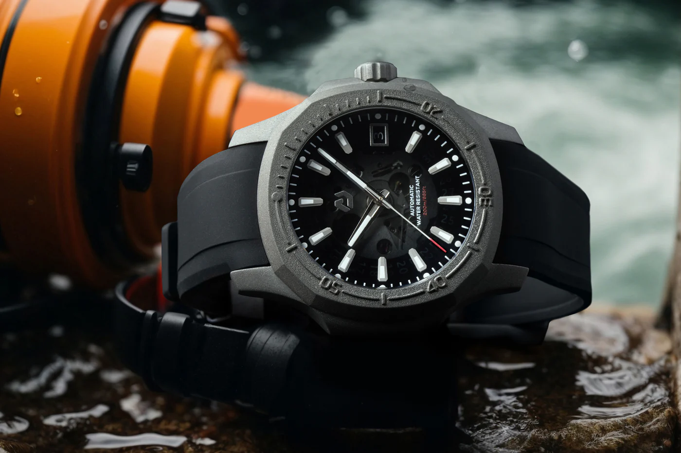 Introducing the N200 Gunmetal Diver's Watch, a perfect fusion of timeless elegance and robust functionality. This exquisite timepiece features a translucent dial, Index markers, and is crafted from durable, gunmetal-coated stainless steel. Designed for both sophistication and underwater adventures.