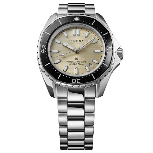 This timepiece combines the qualities of a Sports watch with the elegance of a dress watch. Under a scratch-resistant sapphire crystal glass is a pearl-white dial with a calm coastline pattern. The black polygonal-style bezel with gentle curves not only give a modern aesthetic edge, but is also designed for a functionally enhanced grip – making turning the bezel quick and comfortable. The hands and indices are strongly coated in Lumibrite for high visibility in dark conditions, whilst the case has a super-hard coating for high scratch resistance; the mirror-finished surfaces on the case providing its elegant sheen. Conforming to professional ISO diving specifications, the watch is eminently versatile – suitable for both formal occasions and active wear. This automatic mechanical timepiece is water-resistant up to 300 metres, powered by a reliable in-house 6R55 automatic movement, accurate to -15/+25 seconds per day with a three-day power reserve. Prospex is a combination of the words ‘Professional’ and ‘Specifications.’ Seiko Prospex timepieces are designed to be practical, reliable and durable; to meet the high standards required in extreme environments for sports lovers and adventure seekers alike.