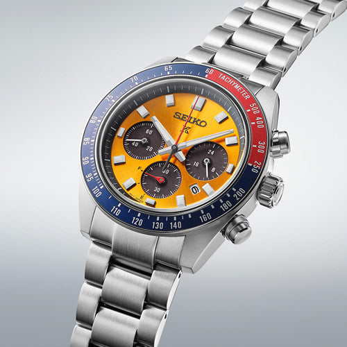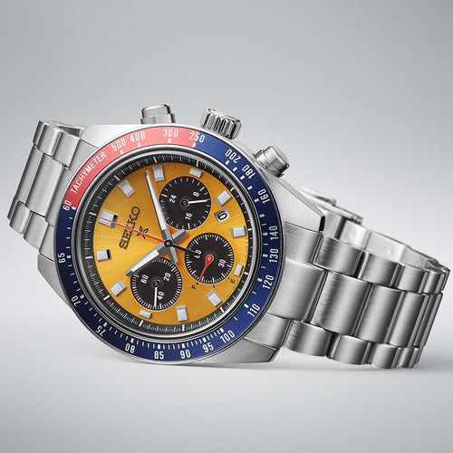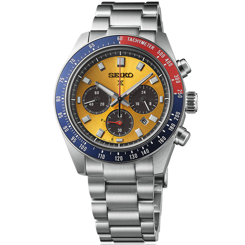 Seiko Prospex, Seiko Prospex Solar Speedtimer Chronograph Yellow Dial Stainless Steel Strap - SSC947P1