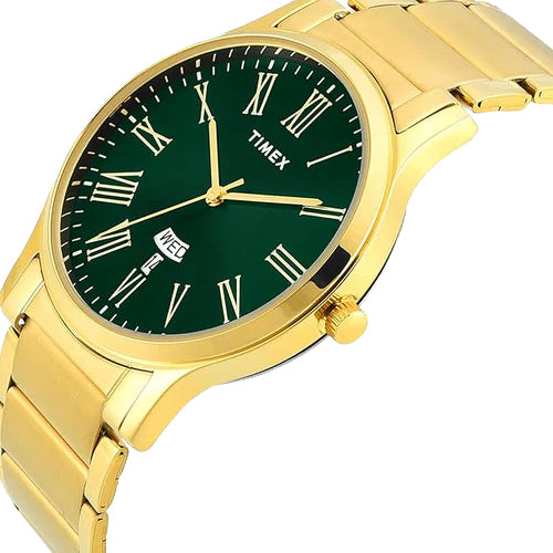 Experience timeless craftsmanship with the TIMEX Watch for Men Analog, a true classic among water resistant watches for man Analog. Designed with a bold 41mm Green dial and a stylish Gold Stainless Steel this Men's watches model combines modern edge with vintage charm. Built for everyday wear, its Stainless Steel case ensures durability, while the 30 m water resistance makes it suitable for daily splashes and unexpected weather. The Analog watch for man runs on reliable Quartz movement, offering precise timekeeping that suits both casual outings and formal occasions.