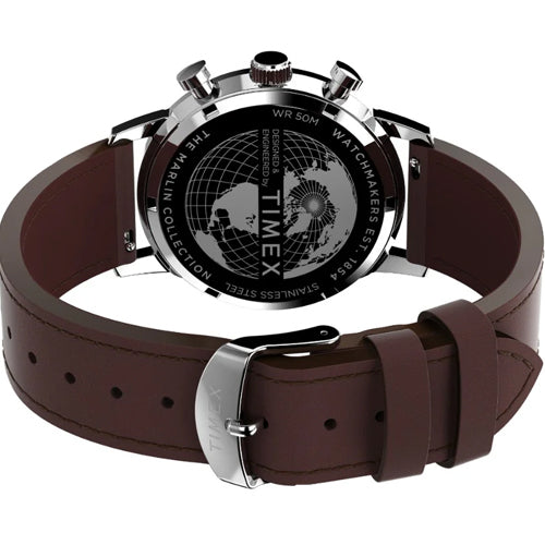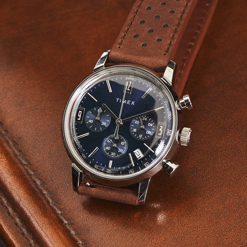 Timex Marlin Men Chronograph Tachymeter Blue Dial Leather Strap Watch 40mm TW2W10200UJ