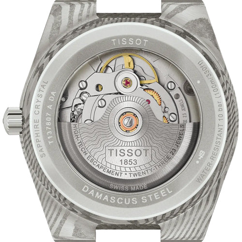 An icon reborn with cutting-edge material : marbled Damascus stainless-steel. If you’re looking for a slim, smooth watch with an authentic ‘70s feel, look no further than the PRX Powermatic 80. Created for those with an eye for design and packed with twenty-first century features in a Tissot case shape from 1978, the PRX is a must-have on every watch fan’s wish list. The self-winding Powermatic 80 movement delivers reliability and precision thanks to the innovative Nivachron hairspring. With 80 hours of power reserve, it’s a modern movement designed to keep pace with busy lifestyles. It is this special steel that gives the dial and case their marbled effect. The leather strap is interchangeable and easy to open. Marbled Damascus stainless-steel case. The case and dial patterns may vary from one piece to another.