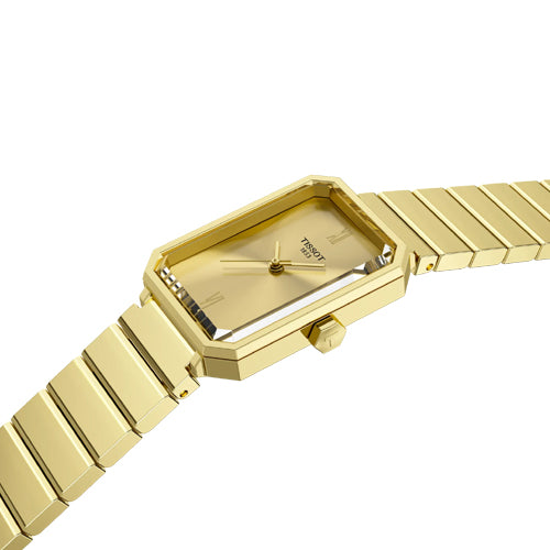 The SRV watch is inspired by the Art Deco times, developed in the 1920s. This time is characterised by geometric shapes and abstract patterns, become a dominant style in architecture, interior design, fashion and graphic arts. While the SRV is directly inspired by a model from 1975, that very design was itself a reinterpretation of Tissot’s earlier creations from the 1920s. The SRV’s quartz movement delivers precision that empowers to move forward fiercely and, with the End-of-Life indicator, the SRV anticipates her next move, so she’s always prepared. More than a name, SRV stands for, Sapphire Rectangle V: a faceted sapphire glass with a rectangular silhouette, and the ‘V’ a nod to its 5-bar water resistance, symbolised by the roman number 5. The metal bracelet is comfortable, robust, easy to clean and long-lasting.
