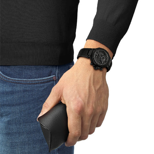 Powered by a quartz chronograph movement, this watch takes you on the road to freedom. The unique design features and 38mm diameter add a new dimension to the collection's identity. Focused on precision timing, this watch reflects our passion for motor sports. Tissot has drawn inspiration from its partnership with motorcycle racing to create a watch that reflects the dynamism of motorcycles and the emotion of the sport... The T-Race collection immerses the wearer in a mechanical environment and awakens the spirit. The bezel resembles a brake disc, the pushers are inspired by handlebars, and the cooling fins of an engine are reproduced on the side of the case. The watch is water-resistant to 10 bar (100 m) and equipped with a quartz chronograph movement. This 38mm version of the Tissot T-Race Chronograph has a 316L stainless steel case. The scratch-resistant, anti-reflective sapphire crystal guarantees enhanced robustness.