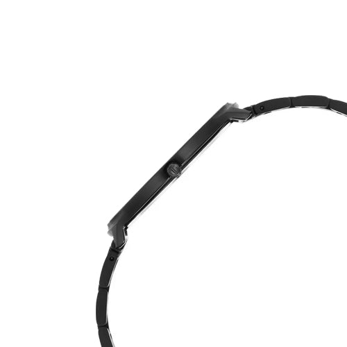 Striking a balance between ultra-slim design and bold presence, this watch redefines minimalism with a powerful edge. Featuring a deep black dial enhanced with subtle horizontal texture lines and rose gold-toned hands, this timepiece exudes contemporary elegance. The dual-finish black stainless steel strap, blending matte and polished finishes, adds dimension and distinction to the overall aesthetic. Designed for the modern man who values subtle statement pieces, this watch is perfect for elevating both formal and after-hours attire.