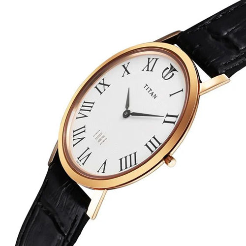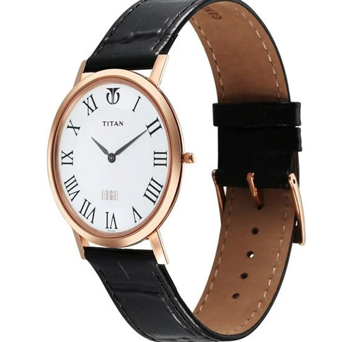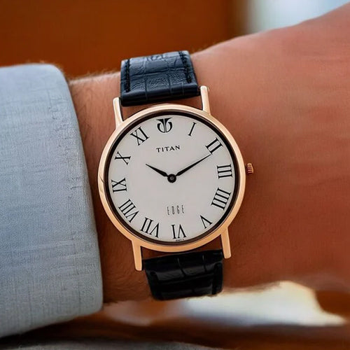 Part of the sophisticated Edge by Titan watches, featuring the reliable T9081 in-house calibre movement. Crafted from high-grade stainless steel, it combines style and durability, making it ideal for both formal and casual occasions. The case has a thickness of 3.60 mm, while the white dial is protected by a robust sapphire glass. The watch showcases elegant black-toned hand, roman numerals and a minimalistic design, offering water resistance up to 30 meters. Its black leather strap adds a touch of classic elegance, making it perfect for daily wear and special events alike.