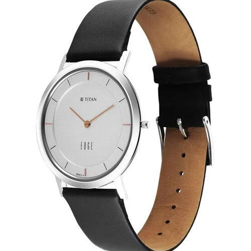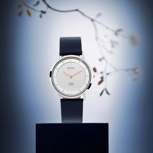 A striking timepiece from Edge by Titan, featuring the reliable T9081 in-house quartz movement. Crafted from high-grade stainless steel, this watch combines elegance with durability, making it perfect for any occasion. Its sleek round case, measuring 37.3 mm in diameter and only 3.6 mm thick, is complemented by a sophisticated blue leather strap secured with a classic buckle. The watch is adorned with a pristine white dial protected by scratch-resistant sapphire glass, ensuring clarity and style. The dial features a smooth finish and bold hour markers, making it easy to read at a glance. Additionally, this timepiece is water-resistant up to 50 meters, allowing for everyday wear without worry. Ideal for both formal and casual settings, this watch is designed for the modern man who values both function and fashion.