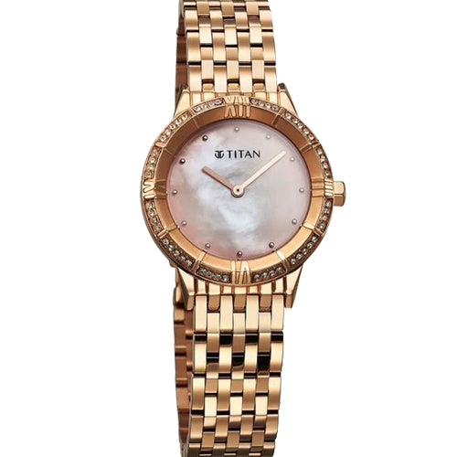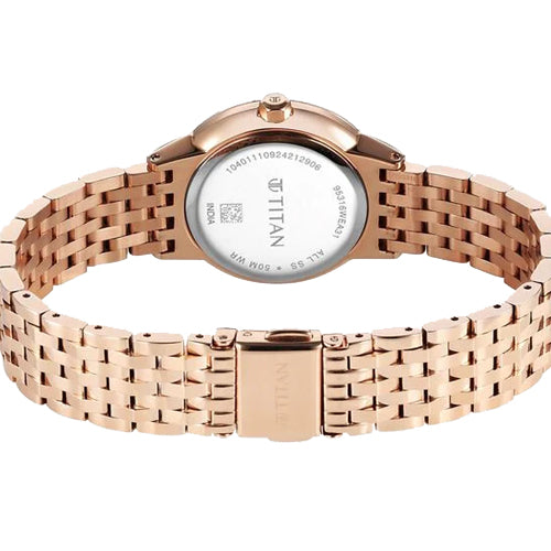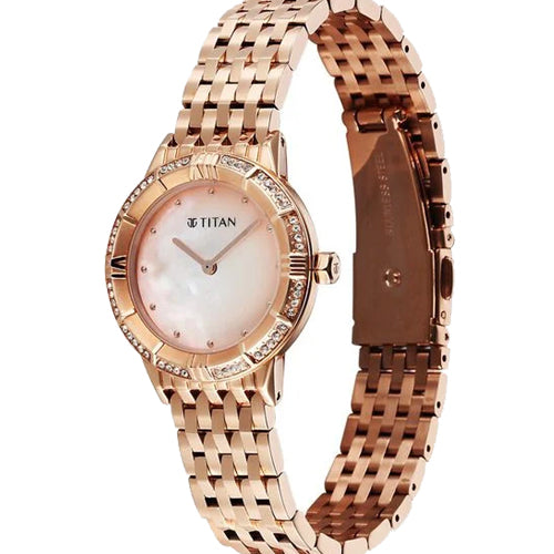 Titan Glamour Quartz Analog Mother Of Pearl Dial Rose Gold Stainless Steel Strap Watch For Women 30.5mm 95316WM01