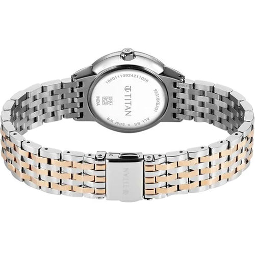 Introducing Titan watch 95316KM01, a premium timepiece from the Titan watches for Women & from collection Glamour. This brand hailing from India, this time piece exemplifies the quality found across Titan watches, featuring Quartz movement and a durable Mineral Glass. Its distinctive Stainless Steel case adds a modern touch, while offering water resistance up to 50 m. The Analog dial ensures timeless elegance, backed by a 24 Months warranty for your peace of mind.