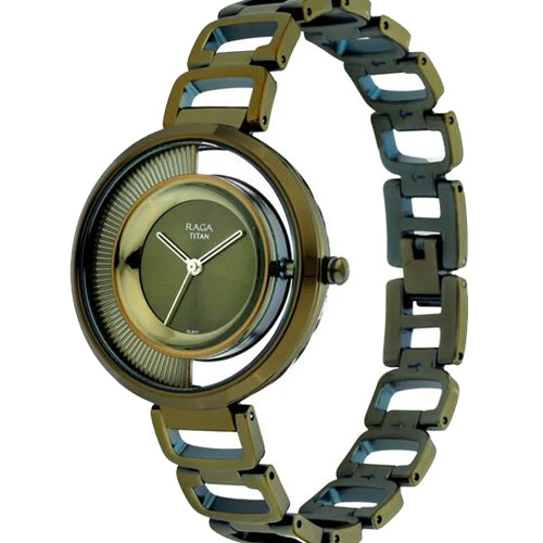 Titan Raga Moments Of Joy Green Dial Women Watch With Metal Strap 35mm NR95140QM01