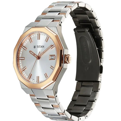 Introducing Titan watch 90212KM01, a premium timepiece from the Titan watches for Men & from collection Regalia Dodecagon. This brand hailing from India, this time piece exemplifies the quality found across Titan watches, featuring Quartz movement and a durable Mineral Glass. Its distinctive Stainless Steel case adds a modern touch, while offering water resistance up to 50 m. The Analog with Date dial ensures timeless elegance, backed by a 12 Months warranty for your peace of mind.