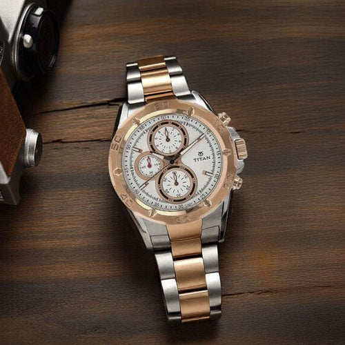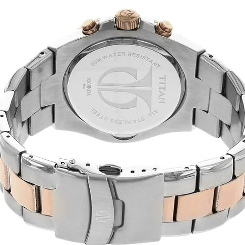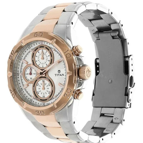Featuring a silver-toned round dial encased in stainless steel, this analog watch by Titan Raga Viva is designed for the women of purpose. The sunray finish on the dial adds to its look. Powered by quartz movement, the watch tells the time with its applique indices placed at five-minute intervals and three plain hands. The dial houses a date window at the 3rd hour marker position. A silver-toned bracelet-style stainless steel strap finishes this watch that secures with a jewellery clasp.