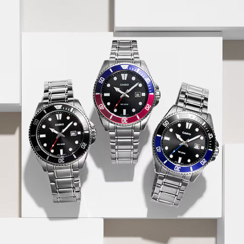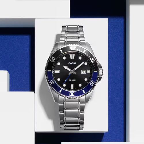 Take your full-metal analog style straight to the water. With water resistance up to 200 meters, a unidirectional rotating bezel, and screw-lock case back, this is a timepiece ready for whatever ocean sports or marine activities you are into. The sporty, yet classic design also features a handy date display, bringing practical utility to fashionable style.