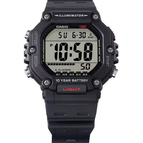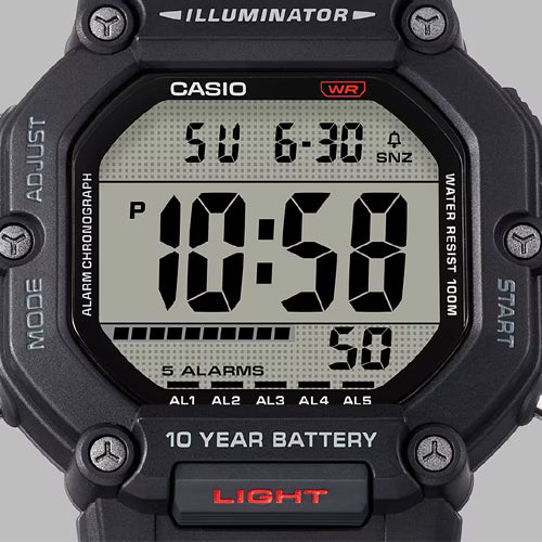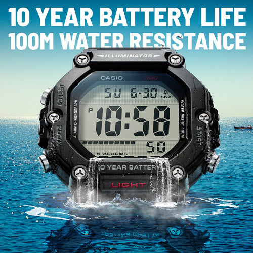 Bold style, practical functionality — A heavy-duty timepiece with large easy-read, easy-use LCD screen and big, bold case. Easily access the LED light from a button on front of the case for even easier use. With 100-meter water resistance and 10-year battery life, you won’t have to worry about this watch for ages. Equipped with dual time, stopwatch, timer, alarm, and more, these watches keep you on track all day long, from sports and recreation to work and virtually everything in between.