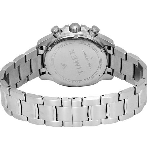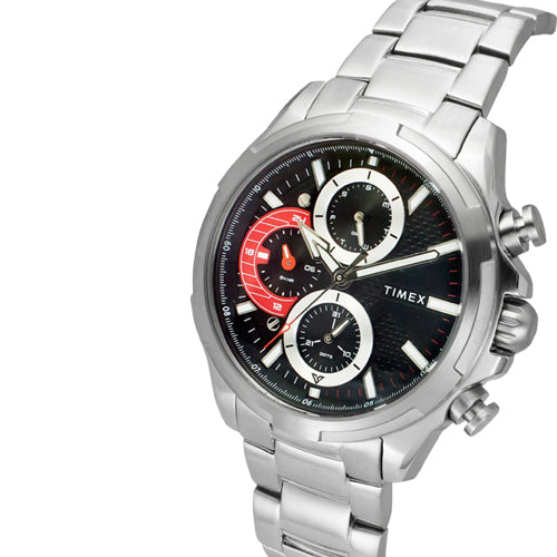 Look modish by donning this men's analog watch by Timex. Enclosed in a 44 mm case, the black round dial is secured by a mineral glass. It displays multifunction. The stainless steel strap showcases a silver hue that uplifts the look of the timepiece. Besides, it is finished with a deployment clasp that provides a secure fit on the wrist.