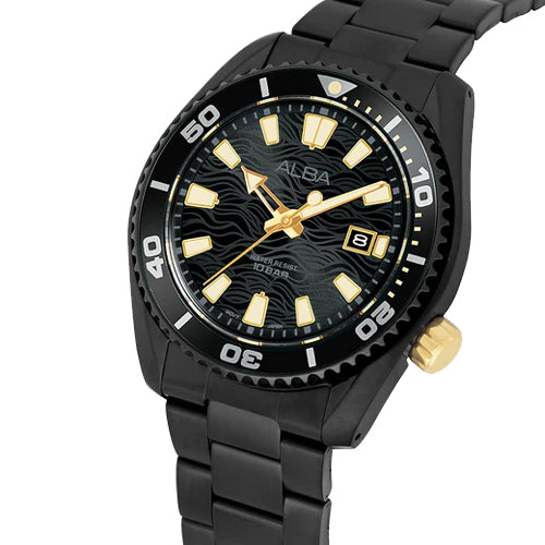 The ALBA Black Surf Dial Water Resistant Men's Watch - AS9R63X1 captures the essence of adventure and precision in a sleek, sporty design. Featuring a bold black surf-inspired dial, this watch reflects the dynamic motion of the ocean, offering a unique and rugged aesthetic. Its water resistance ensures reliability even in challenging conditions, making it an ideal choice for active individuals. The durable stainless steel case and comfortable band complement its robust design, while the luminous hands and markers provide enhanced readability in low light. A perfect blend of functionality and style, this watch is built for the man who embraces both action and elegance.