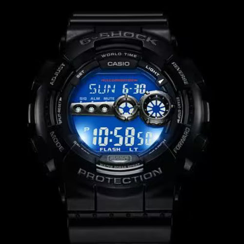 A model equipped with a high-brightness LED backlight from G-SHOCK, which continues to evolve in the pursuit of toughness. Use of a high-brightness LED system and a light guide plate makes the watch easy to read even in the dark. It also has practical functions such as world time, an alarm, and a stopwatch. The color is classic G-SHOCK black, and the brand-color red is used as an accent throughout.