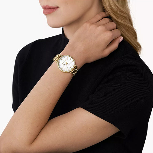 Our Pyper watch is the definition of everyday elegance. Designed with a stainless steel bracelet, this gold-tone style features a white novelty watch face. Wear it solo or stack it with coordinating styles for a glamorous effect.