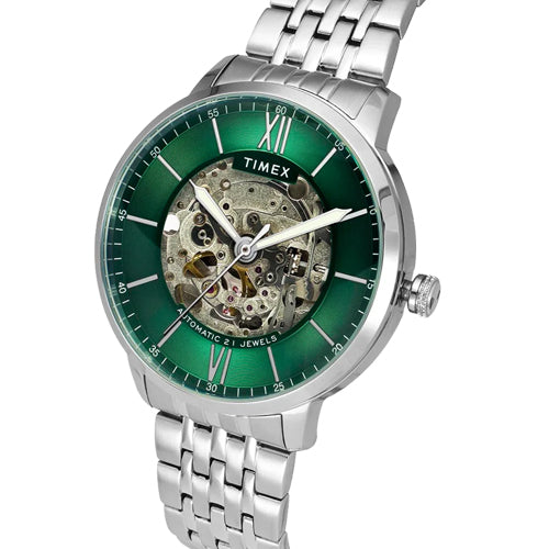 Timex E Class Trend Men Automatic Green Round Stainless Steel Dial Watch 42mm TWEG23502