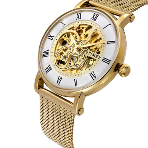 Timex Men White Round Dial Analog Automatic Watch 44mm TWEG16722