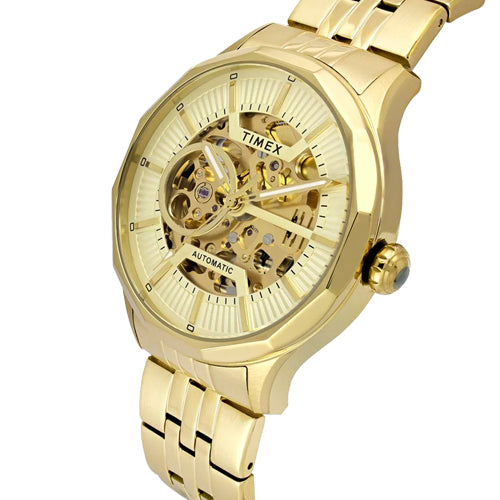 Experience timeless craftsmanship with the TIMEX Watch for Men Automatic Analog, a true classic among water resistant watches for man Automatic Analog. Designed with a bold 44mm Champagne dial and a stylish Gold Stainless Steel this Men's watches model combines modern edge with vintage charm. Built for everyday wear, its Stainless Steel case ensures durability, while the 50 m water resistance makes it suitable for daily splashes and unexpected weather. The Automatic Analog watch for man runs on reliable Automatic movement, offering precise timekeeping that suits both casual outings and formal occasions. This watch for man ideal for those who appreciate a minimalist look in a classic watch for man making it a perfect choice for office, travel, or daily commutes. Whether you're shopping a watch for man, a formal watch for man, or a timeless wrist watch for Men, this model checks all the right boxes. It also makes a thoughtful gift, combining elegance with practicality.Its Comes With minimal maintenance and a one-year warranty (limited to manufacturing defects).