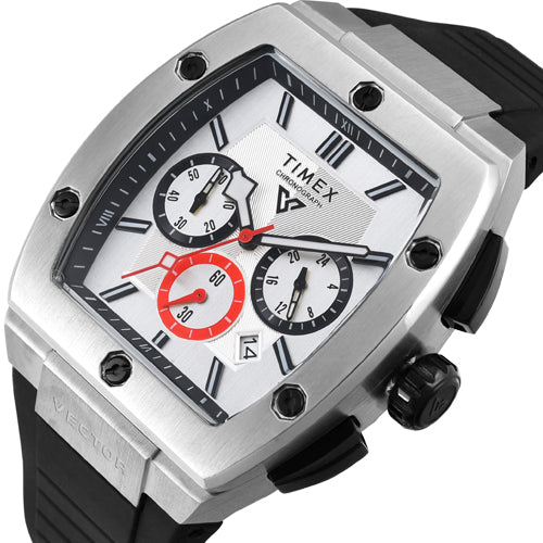 Timex Vector Men Silver Rectangle Chronograph Dial Analog Watch 41.5mm TWEG26200