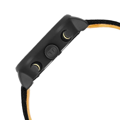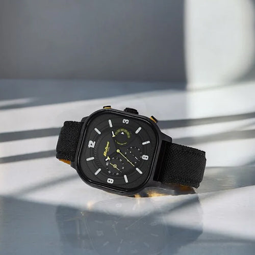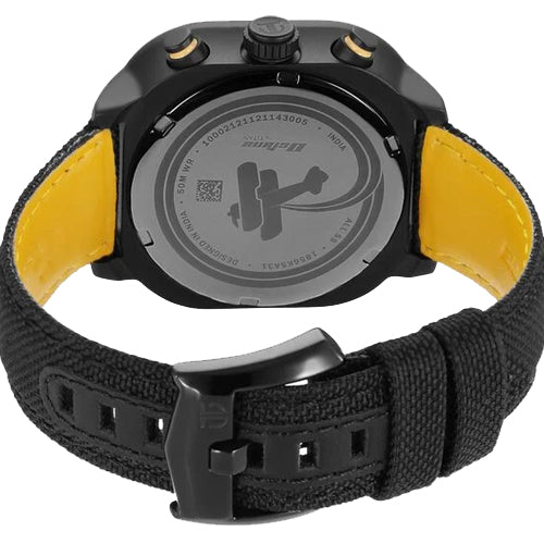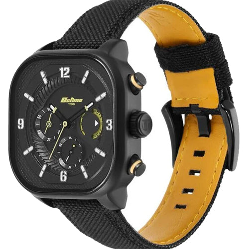 Spruce up your accessory collection with this analog watch from the Octane collection by Titan. Its fabric strap comes in a shade of black that elevates the look of the watch. The black square European numbers and stick dial has a diameter of 39.5 mm. It is completed with a buckle clasp to ensure a secure fit on the wrist. It has a chronograph functionality, Quartz movement, sword needles and water resistance up to 50 m.