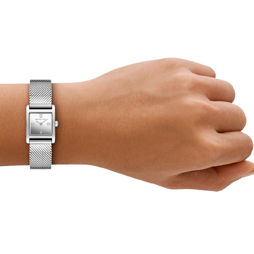 The Georgie watch gets a high-shine update for Holiday with a sleek mirror dial and a fluid silver-tone liquid mesh strap that catches the light with every move. This petite square design delivers modern glamour with a glossy edge—perfect for festive nights and elevated everyday wear.