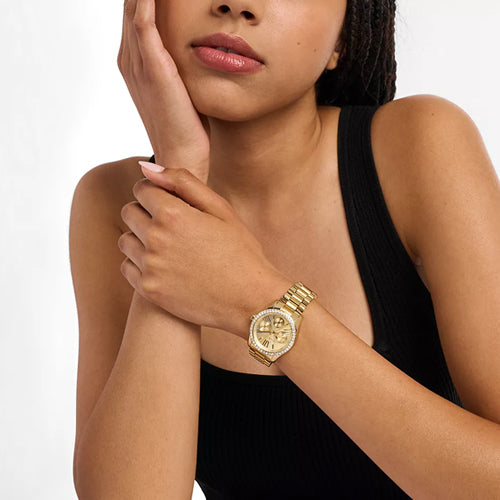 A timeless icon with a modern update, the Lexington Lux watch features a 34mm case for a refined fit. Its signature three-link bracelet and glitz topring add a touch of glamour, while the gold-tone finish delivers effortless sophistication for any occasion.