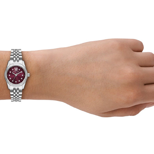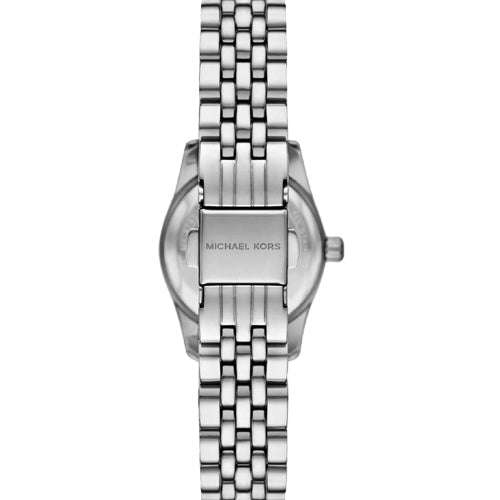 The Lexington watch exudes everyday glamour with its silver hues and sparkling pavé accents. Made entirely of stainless steel, this petite timepiece boasts a round face with a beveled topring and a bracelet strap. Slip it on to give both day and night outfits a dose of sophisticated charm.
