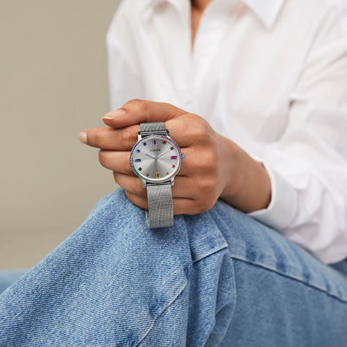 Timex Transcend Women Silver Round Dial Analog Watch 34mm TW2Y19100IK