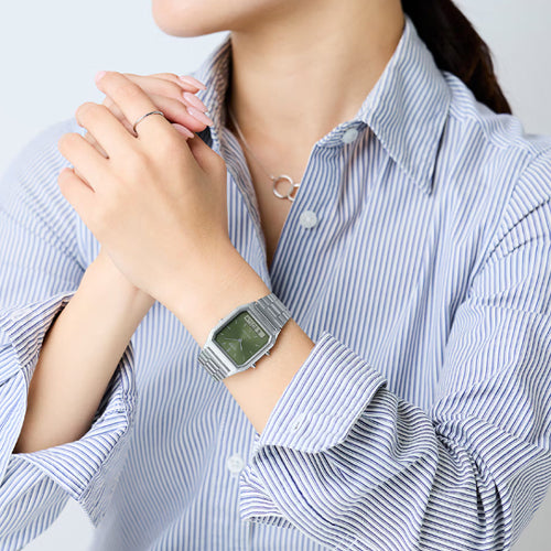 The classic analog-digital combination dressed up in beautiful hues. Featuring a sunray dial for a colorfully elegant twist on a time-honoured design. Water resistance for daily use and handy features like stopwatch, alarm, and more.
