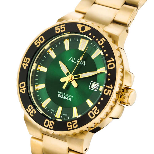 A must-have timepiece for all the watch aficionados, this men's analog watch watch from the mechanical by ALBA will be a perfect pick. The green round dial is protected by a mineral glass. The stainless steel strap comes in a gold hue that further elevates the look of the timekeeper. Besides, it is completed with a fold-over clasp with double push button safety clasp to ensure a secure fit on the wrist.