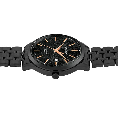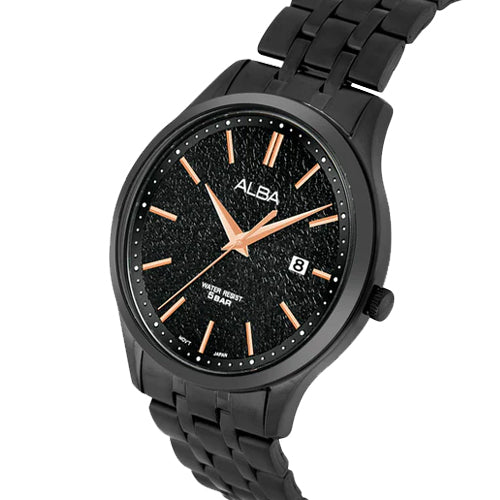 The ALBA Black Marble Dial Men's Watch is a striking timepiece that combines sophisticated design with luxurious details. Featuring a unique black marble dial, each watch is subtly one-of-a-kind, offering a rich texture and depth that enhances its bold, masculine appeal. The sleek stainless steel case complements the refined marble dial, while the precision quartz movement ensures reliable timekeeping. With its elegant design and attention to detail, the ALBA Black Marble Dial Men's Watch is perfect for those who appreciate both style and craftsmanship in a timeless accessory.