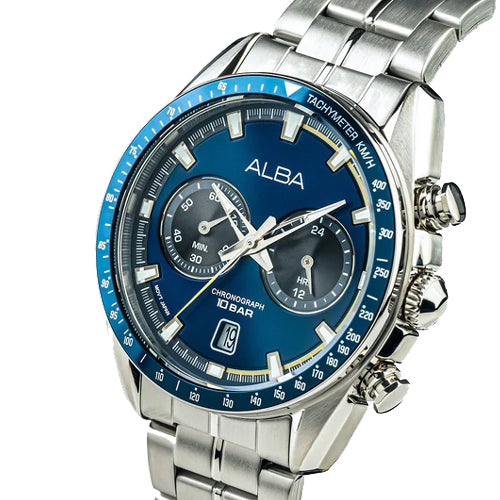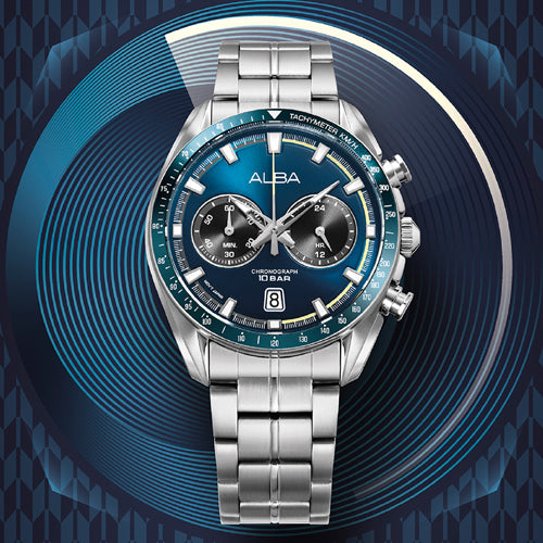 Designed to suit the preference of urban men, this analog watch from the collection by ALBA is sure to make a style statement. Secured by a mineral crystal, the blue round dial is protected in a case. It exhibits crown for time adjustment. The stainless steel strap flaunts a silver hue that accentuates the look of the watch. Moreover, it is fitted with a fold-over clasp with safety clasp to ensure a secure fit on the wrist.