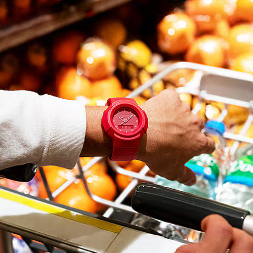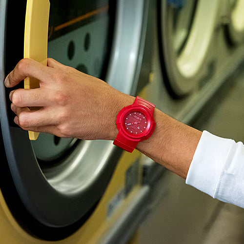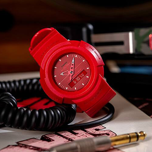The AW-500 Series revives a famous model from the past. The AW-500 now making a comeback emerged as the first analog-digital combination G-Shock model in 1989, turning on its head the preconceived notion that analog watches were susceptible to shock due to their delicate hands, gears and other parts. It uses the popular Redout design. Not only does this model include the basic stopwatch and alarm features, but it is also equipped with practical features including EL backlight and a battery with seven years' life. Following numerous past reissues and collaborations, this is a revival of a G-Shock classic.