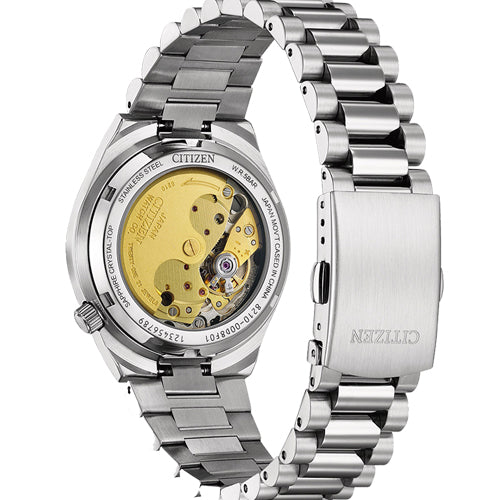 The CITIZEN TSUYOSA NJ0200-50L features a refreshing Ice Blue dial, offering a vibrant yet calming aesthetic perfect for everyday wear. This 37mm timepiece blends timeless design with modern functionality, boasting a stainless steel case, sapphire glass, and luminous hands and indices for readability. Powered by the Caliber 8210 automatic movement, it offers a 42-hour power reserve and is water-resistant to 5 BAR, making it both stylish and practical. With its sleek silhouette, chamfered case, and comfortable bracelet, the NJ0200-50L is an ideal choice for those seeking an elegant, versatile watch that’s built to last.